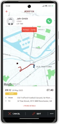 - App seamlessly interfaces with the ComCab Manchester’s online web-booker and dedicated contact centre.