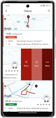 - Features include vehicle tracking, booking history and the ability to set favourite addresses and journeys