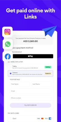 Create and share payment links to let your customers pay online. Create a payment link with support for items, notes, shipping addresses, discounts, and tips in a few seconds. Tap to share over WhatsApp, Instagram, Telegram, email, or just about anywhere in a few taps!