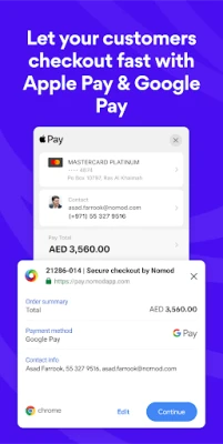 Designed for merchants in the UAE and KSA, Nomod allows your customers to pay online or in-person using payment links, Tap to Pay, QR codes, Apple Pay, Google Pay, cards from all major networks, and even Tabby and Tamara.