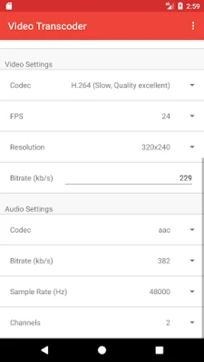 Video Transcoder is an application which uses the open source program FFmpeg to transcode video files from one format to another. By selecting the video to process, details for the video are provided and the desired settings can be configured.